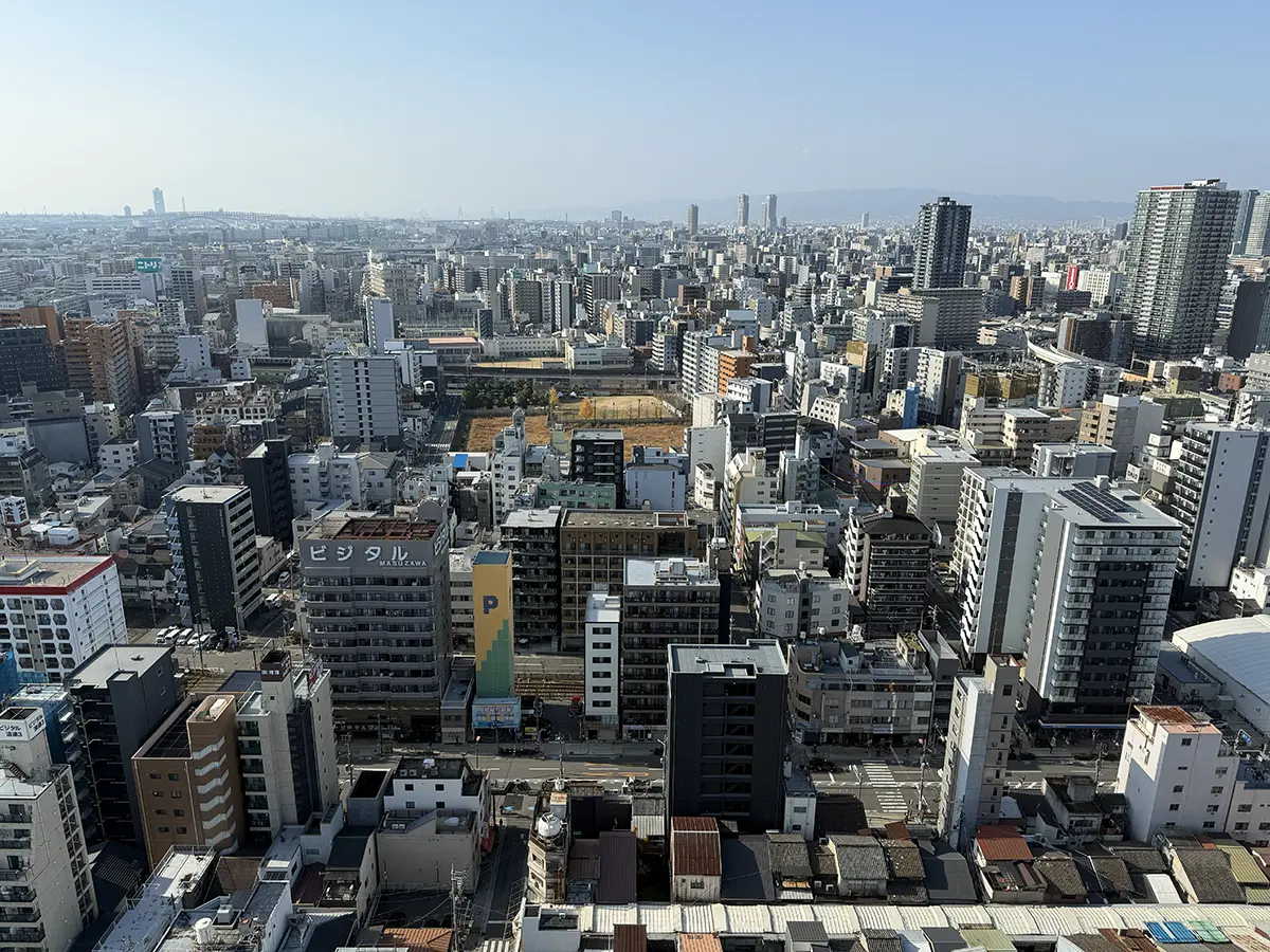 DAY2はちょっと時間に余裕があったので道頓堀でたこ焼きを食べて、通天閣に登ってみました。写真は通天閣から見た(たぶん)京セラドーム方面です。